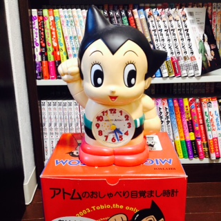たぶん中学1年のときの誕生日に両親が買ってくれたものだと思う。こんな素敵なものを一体どこで見つけたんだろう??おなじみのテーマ曲ワンフレーズとアトムの声(アストロ以前なので清水マリvar)が鳴る。持っている手塚グッズの中で一番お気に入り。