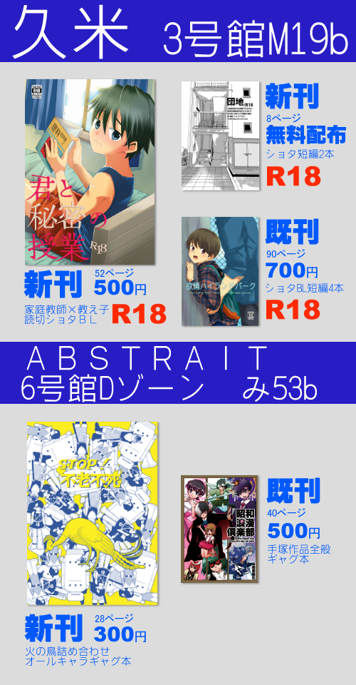 創作のほうの新刊「君と秘密の授業」はミナカミ個人誌で、手塚作品の既刊の「昭和浪漫倶楽部」はセンリさん、チッタさん、ミナカミさんのお三方の合同誌で、私は全くかかわっておりません。