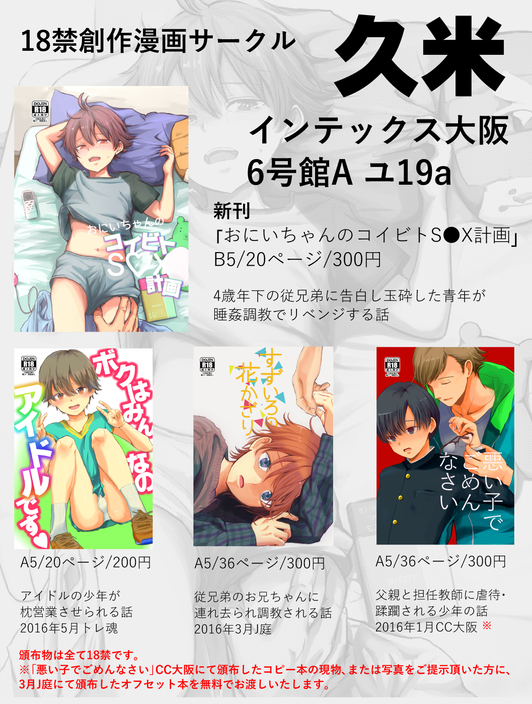 配置ジャンルは創作JUNEなのですが、14年に発行したチャンピオンアンソロジーも持っていきますのでよろしくお願いします。